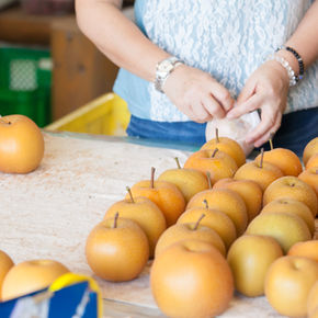 朝採りの新鮮な巨峰・ピオーネ・シャインマスカット・シナノスマイル・フジミノリ、梨は幸水・豊水など他にも色々な品種をご用意しています。ご試食もありますので、食べ比べに是非お寄り下さい。お電話でのお取り置き承っておりますので、ご連絡ください。